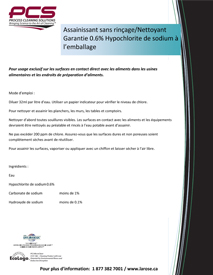 Description: Source canadienne pour les désinfectants d'hypochlorite de sodium stabilisé, les désinfectants et les nettoyants oxydants